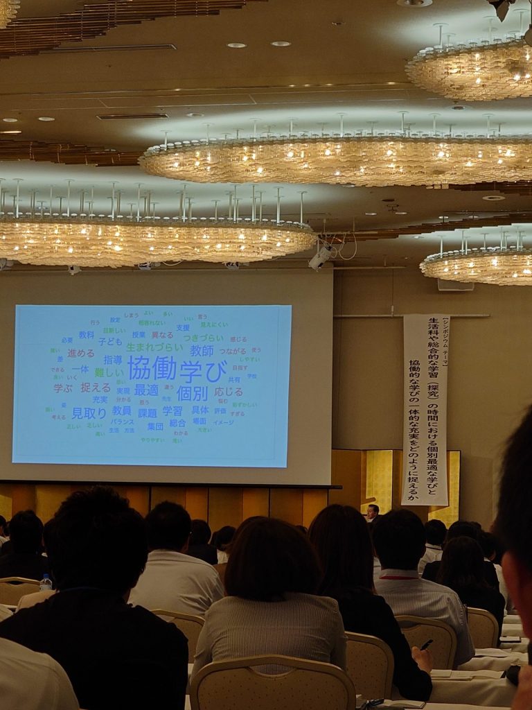 シンポジウムでは、田村学先生がコーディネーターとなり、「生活科や総合的な学習(探究)の時間における個別最適な学びと協同的な学びの一体的な充実をどのように捉えるか」というテーマで進められました。「令和答申」と言われる令和3年1月の「「令和の日本型学校教育」の構築を目指して~すべての子供たちの可能性を引き出す,個別最適な学びと,協働的な学びの実現~(答申)」が大事であると、シンポジウムを通して伝えてくださいました。
