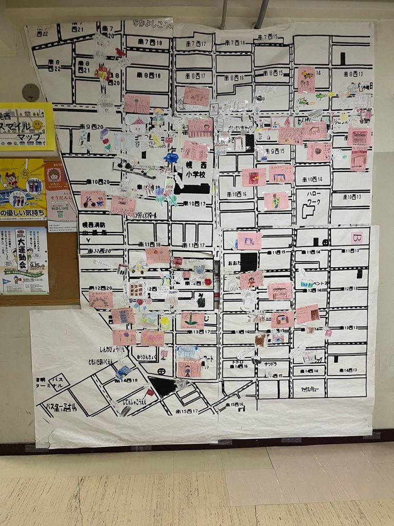 【報告】札幌市大会 生活科「まちたんけん」で対話的に学ぶ 2024年10月28日2025年6月14日 ブログ 報告 9月25日(水)に幌西小学校で行われた札幌市大会。2年生生活科で「幌西スマイルたんけんたい」の学習をしました。付箋紙に気付きを記入した「研究ボード」を介しての対話、マップに気付きを加えていき、掲示して目にすることでの対話などにより、子ども同士が協働的に学ぶ姿が見られました。子ども同士、教師と子どもの関わりが温かで、一人一人のやる気と思考の深まりがすてきな授業でした。