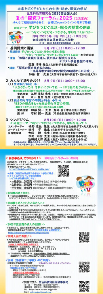 生活科教育研究会主催「夏の探究フォーラム2025(第35回 夏の全国大会)」のご案内 (ハイブリッド開催)