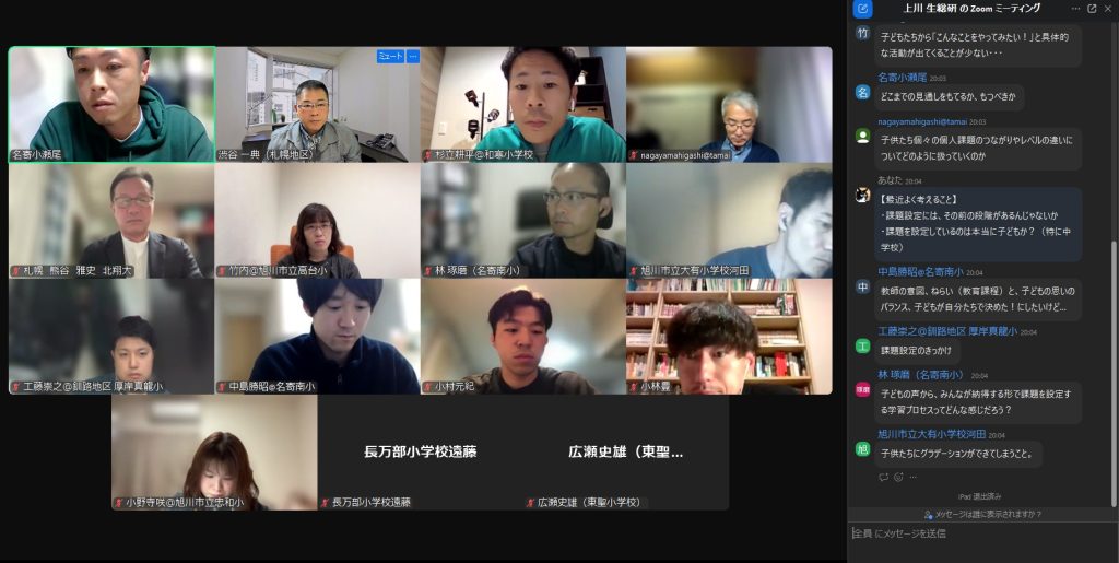 これまで上川地区を中心に実施してきた学習会を、地域を越え、より多くの先生方と一緒に学び合える場に!上川地区のみならず他地区からも参加者があり、名寄小学校の瀬尾先生の実践発表をもとに、大変充実した学びの60分間になりました。