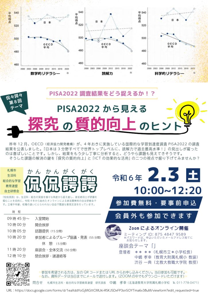 昨年12 月、OECD(経済協力開発機構)が、4 年おきに実施している国際的な学習到達度調査PISA2022 の調査結果を公表しました。「日本は3 分野すべてで世界トップレベルに、読解力で過去最高水準!」の見出しが躍ったのは喜ばしいことです。しかし、結果をもう少し丁寧に分析すると、どうやら課題も見えてきそうです。 そうした課題の解消の鍵を「探究の質的向上」と「ICT の効果的な活用」の二つの視点で掘り下げてみませんか?
