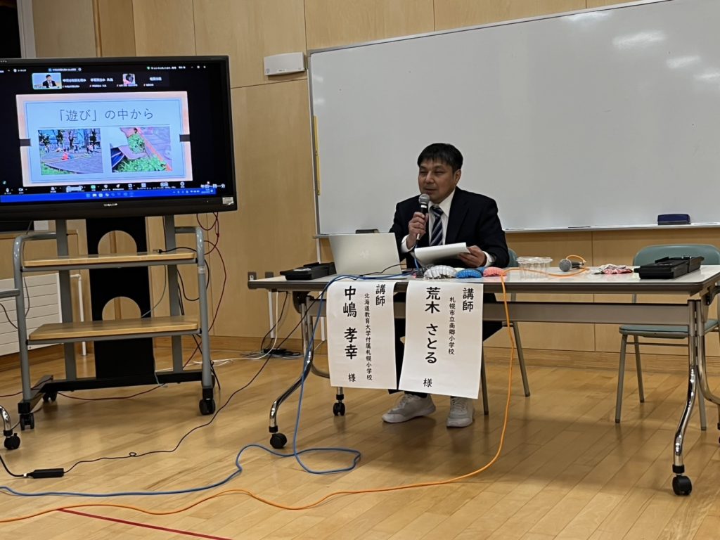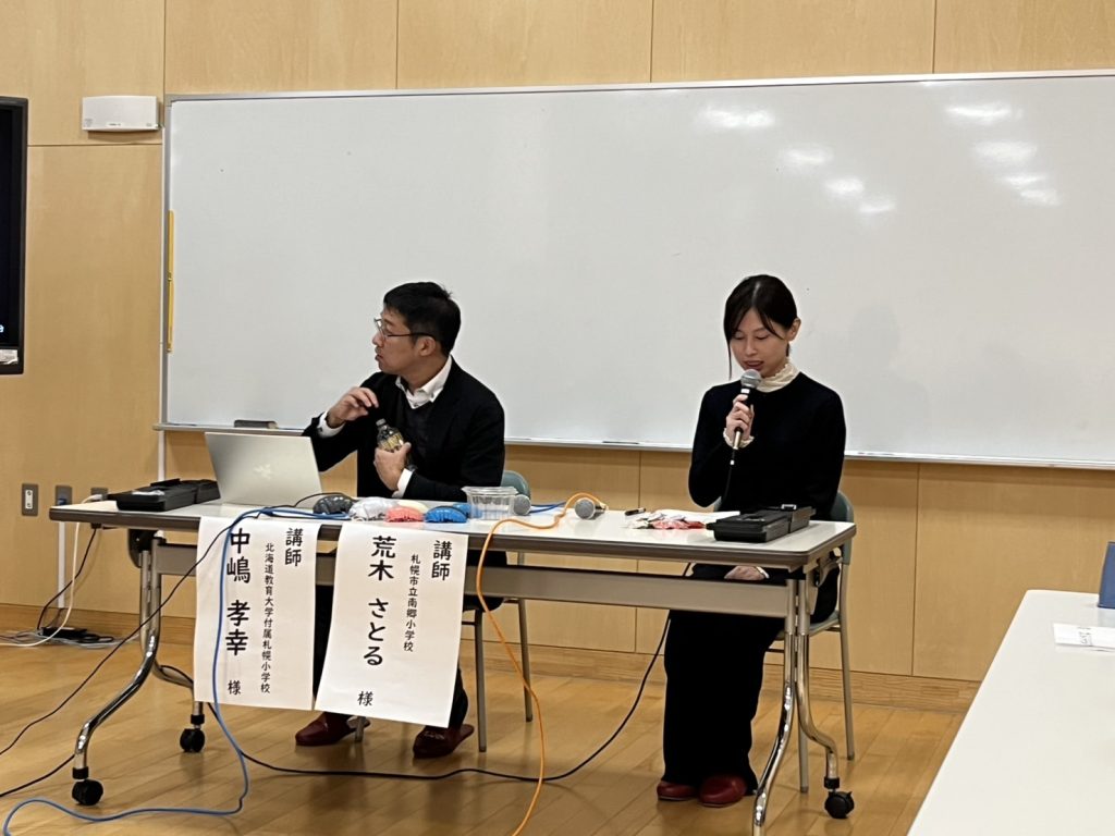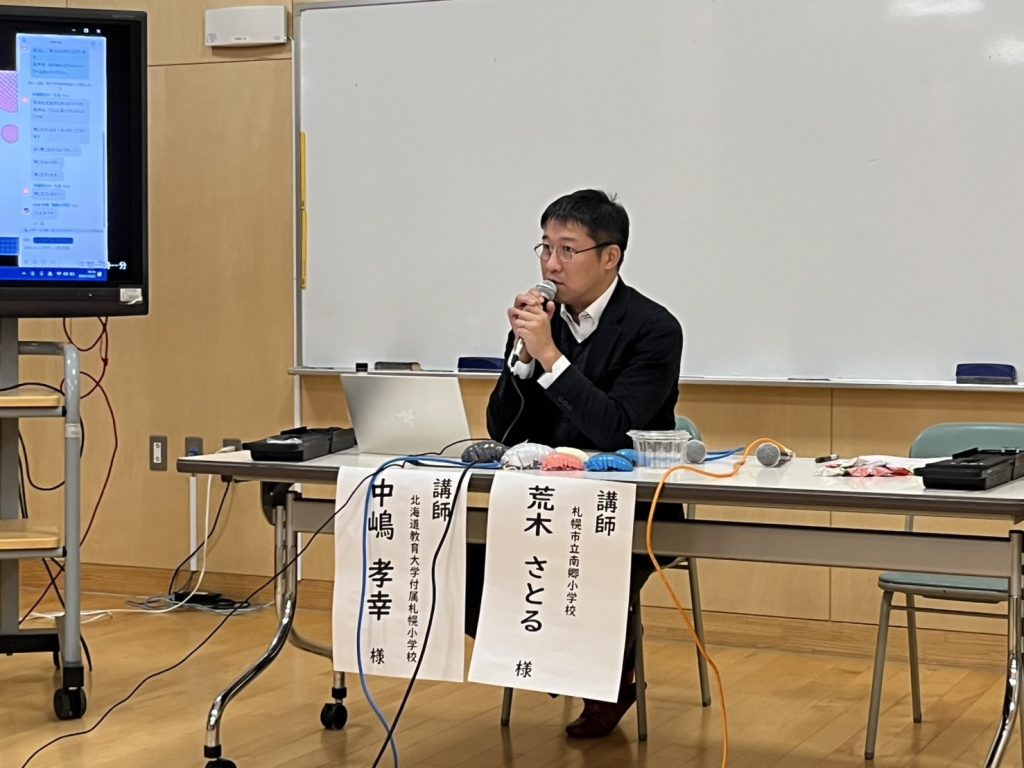 (南郷小学校 荒木 さとる先生、北海道教育大学附属札幌小学校 中嶋 孝幸先生による実践紹介)